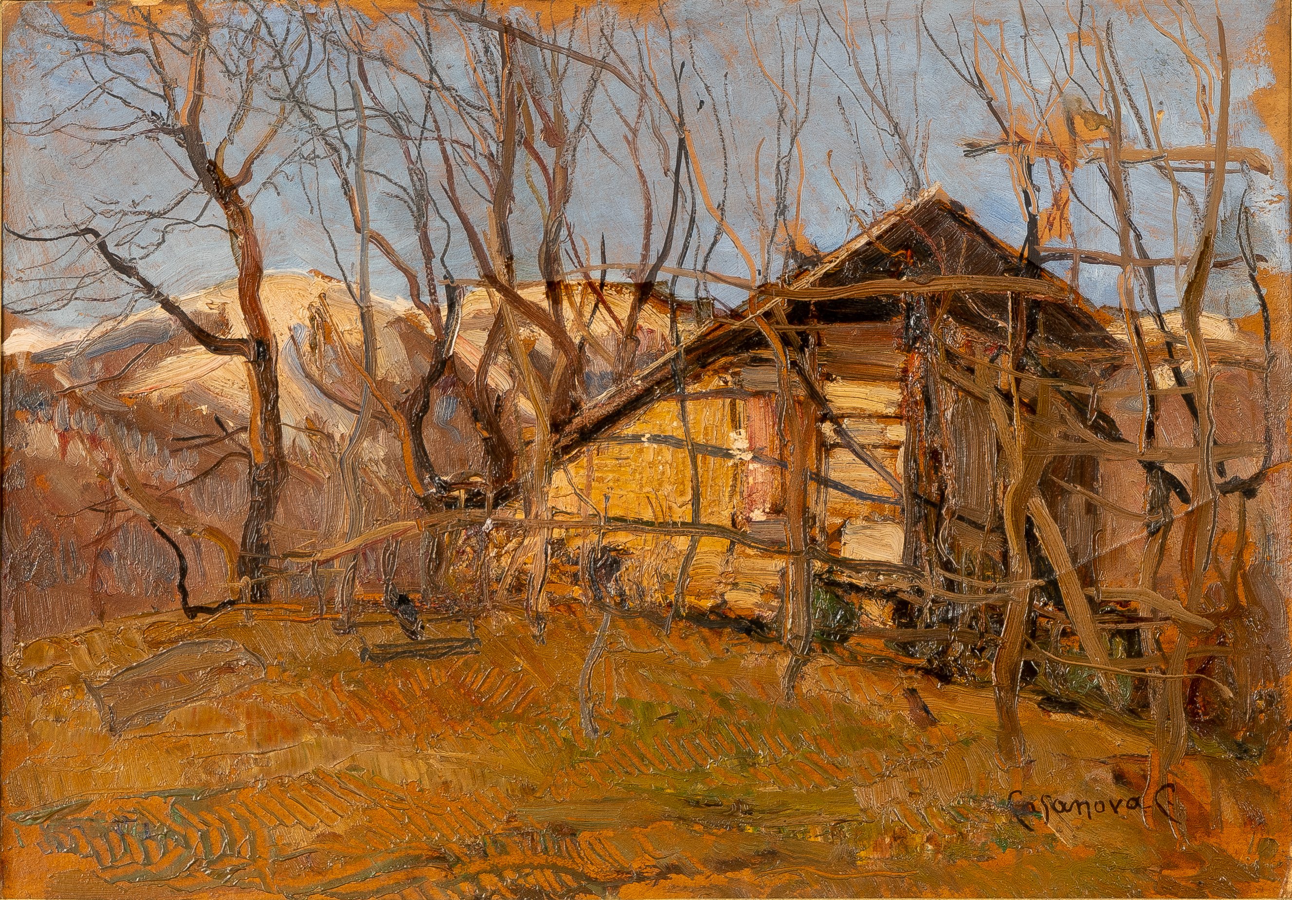 Olio su cartone cm 24x32,5 paesaggio firmato in basso a dx