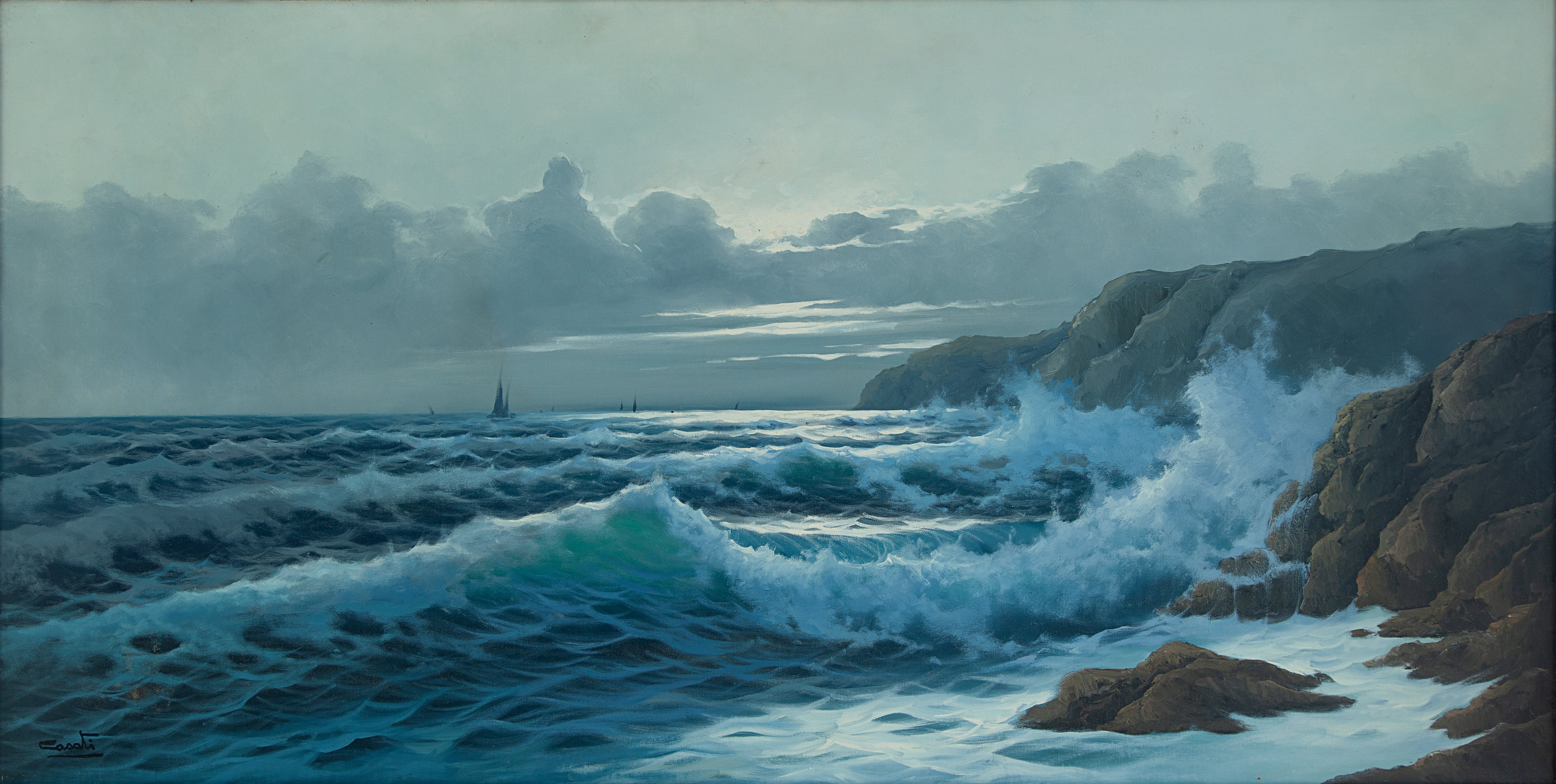 Olio su tela cm 61x122 firmato in basso a sx