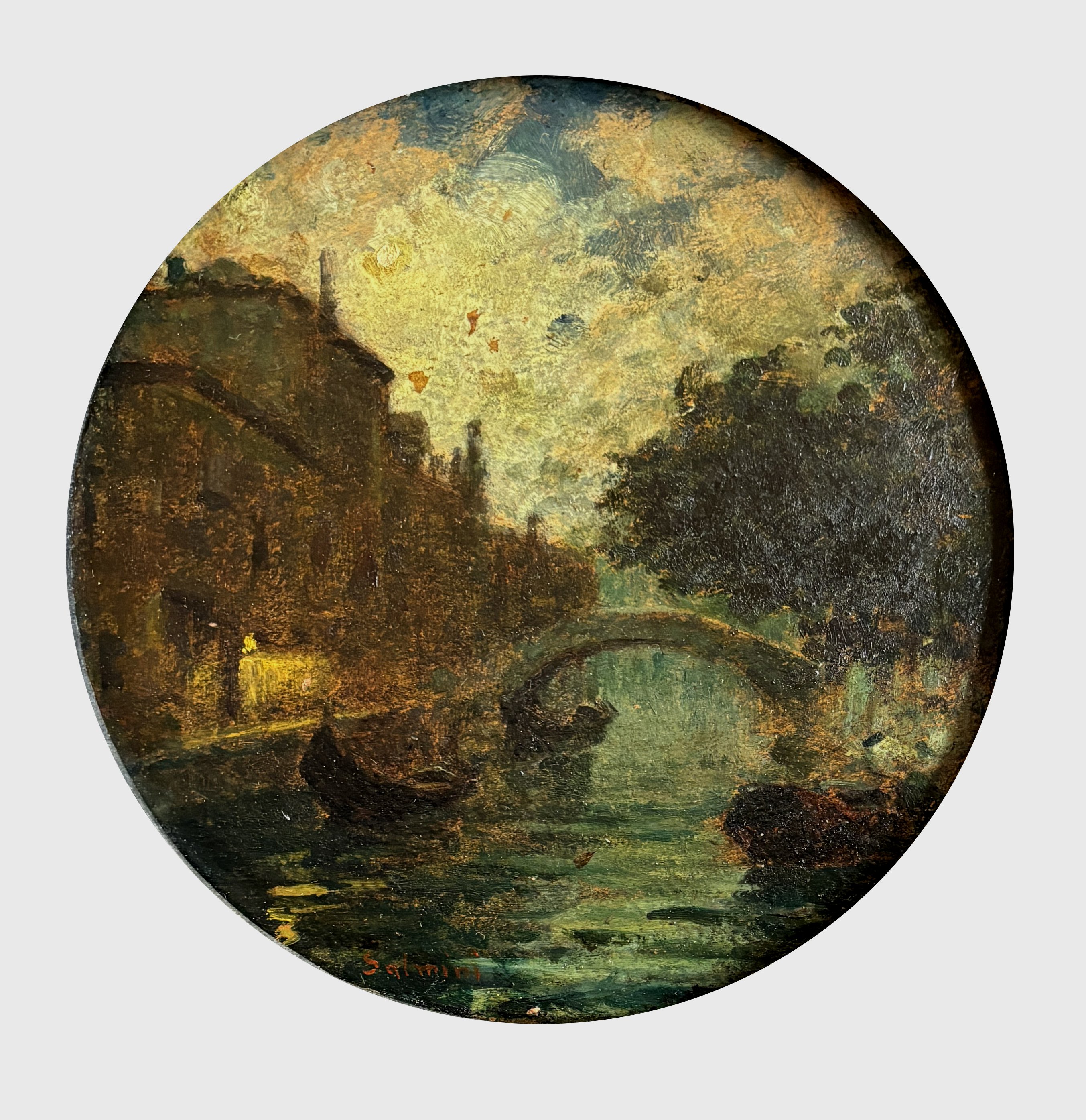 Olio su cartone diametro cm 17,5 firmato in basso a sx