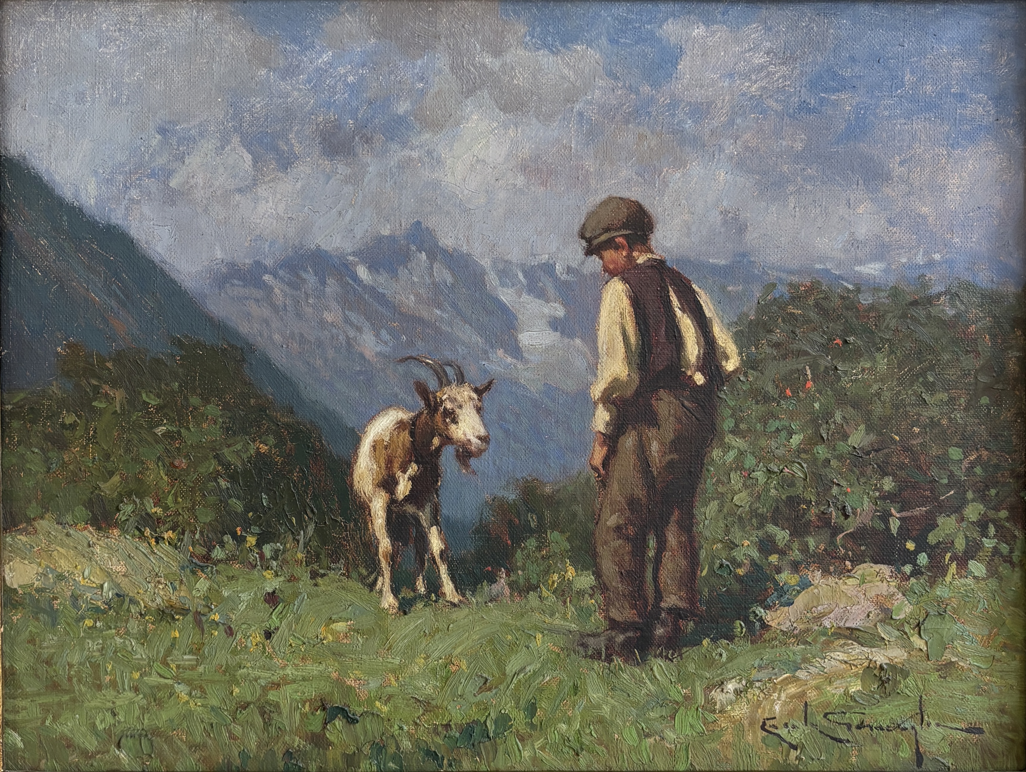Paesaggio montano con pastorello