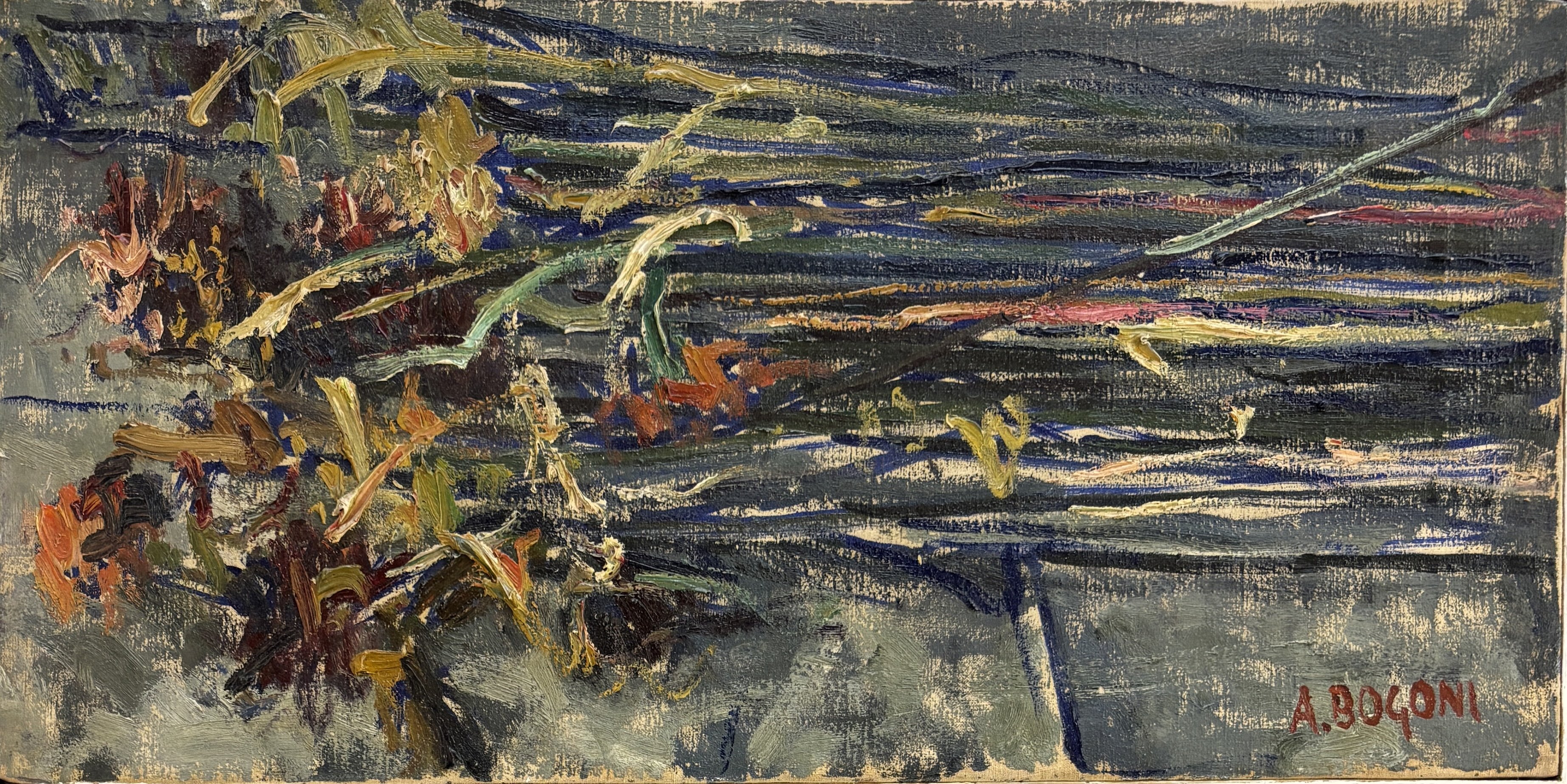Olio su tela cm 25,5x50 firmato in basso a dx