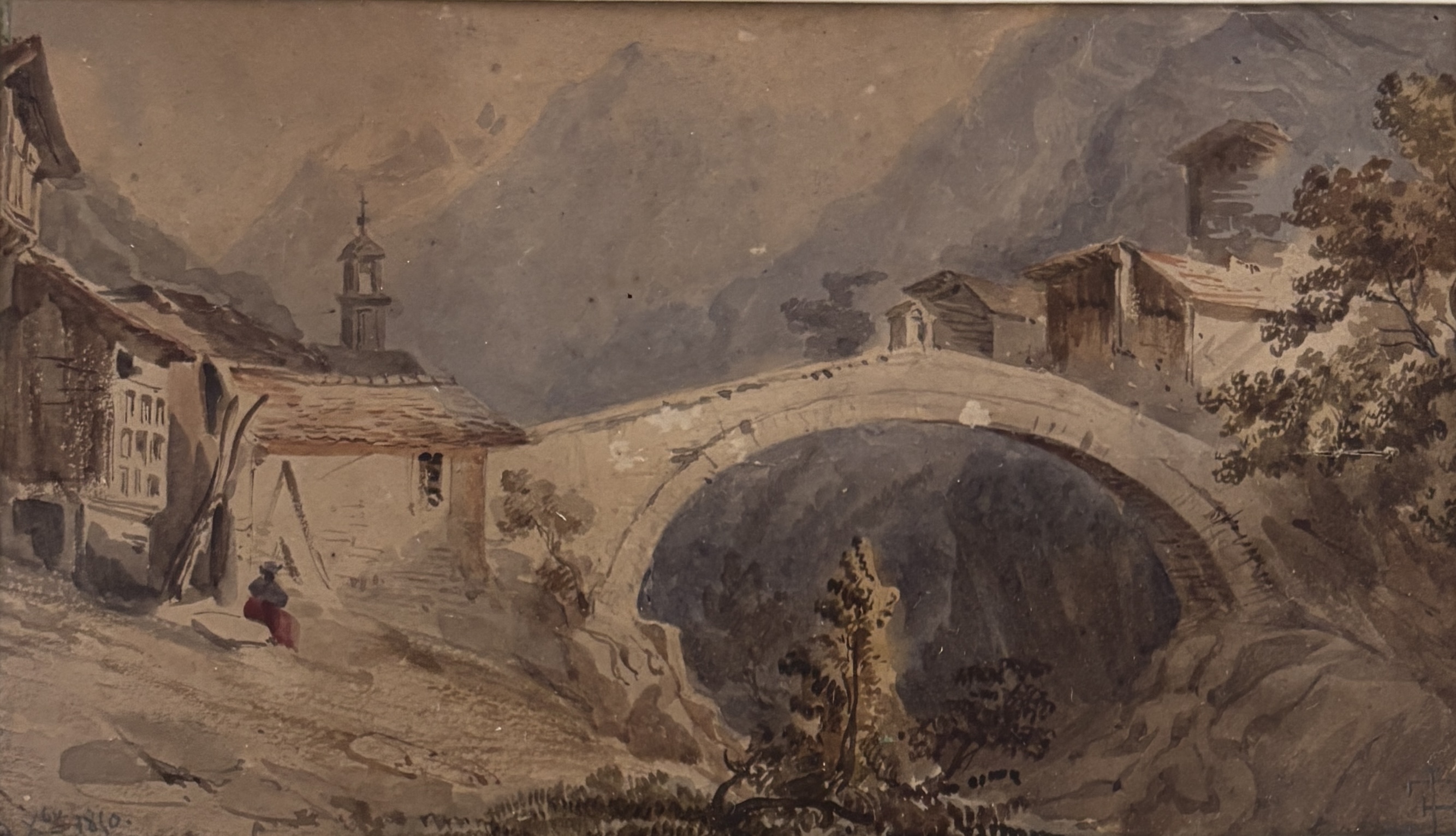 Olio su carta cm 10x17 siglato in basso a dx datato 1850