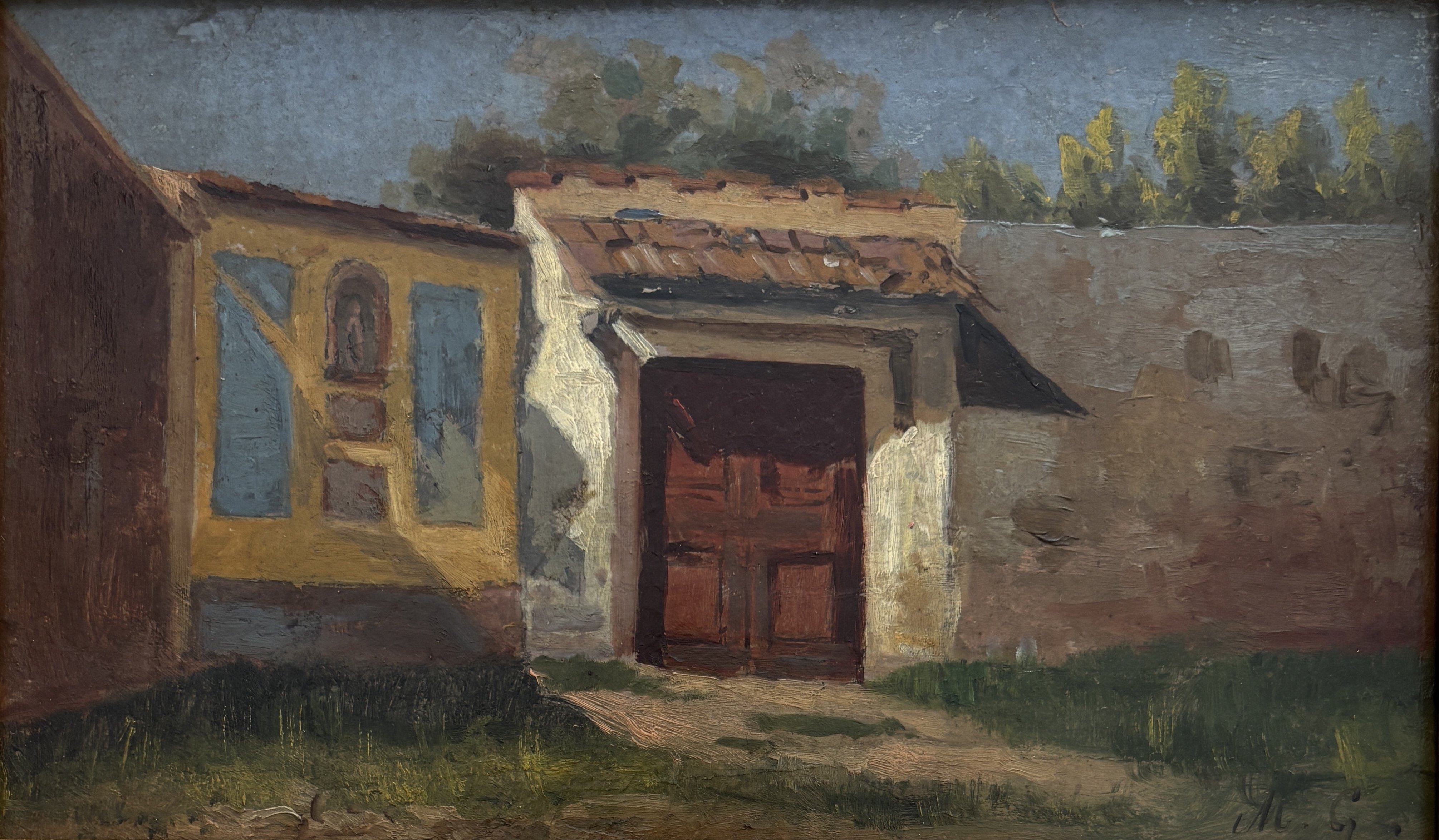 Olio su tavola cm 12,5x22 siglato in basso a dx