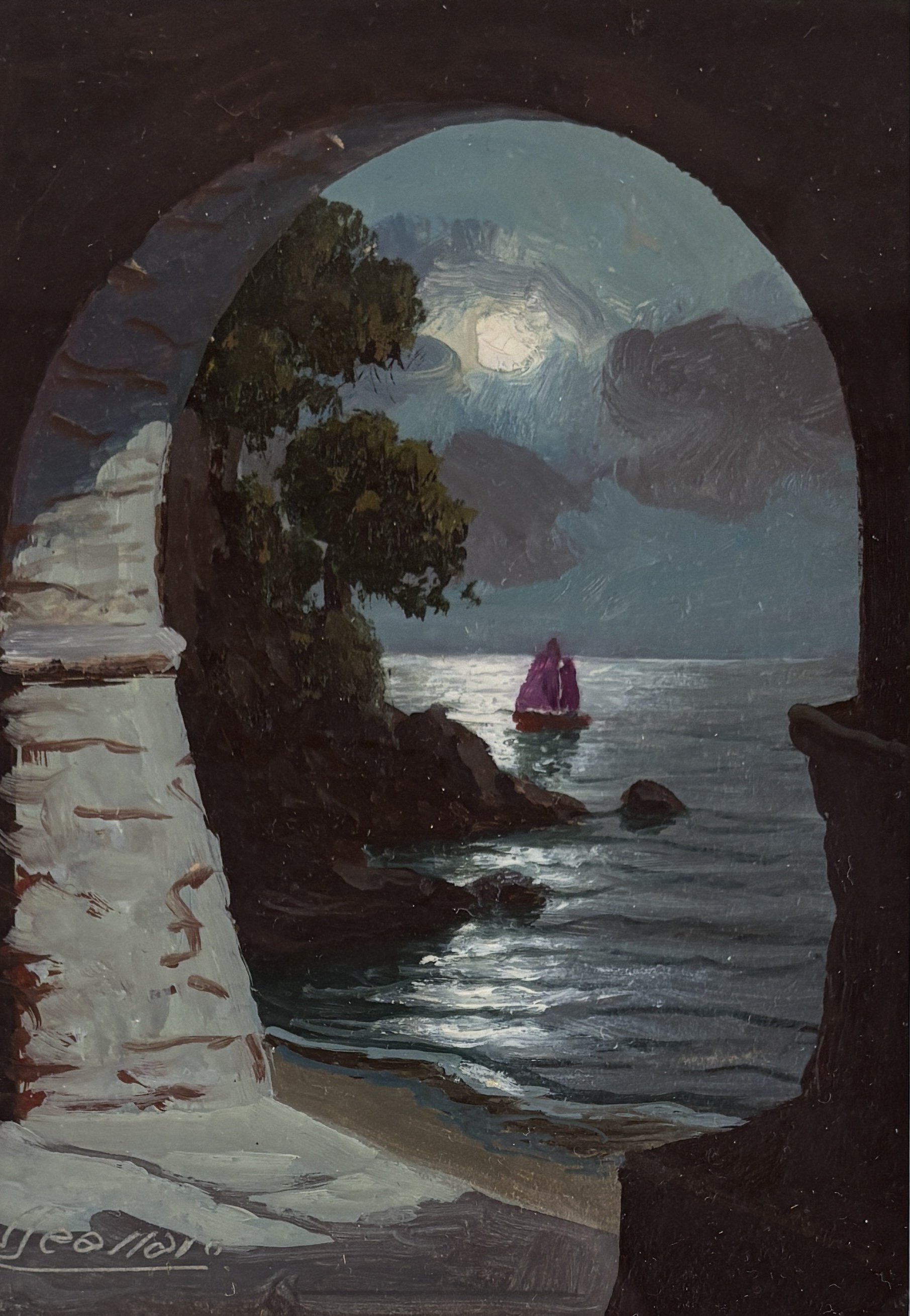 Olio su tavola cm 14,8x10,5 firmato in basso a sx