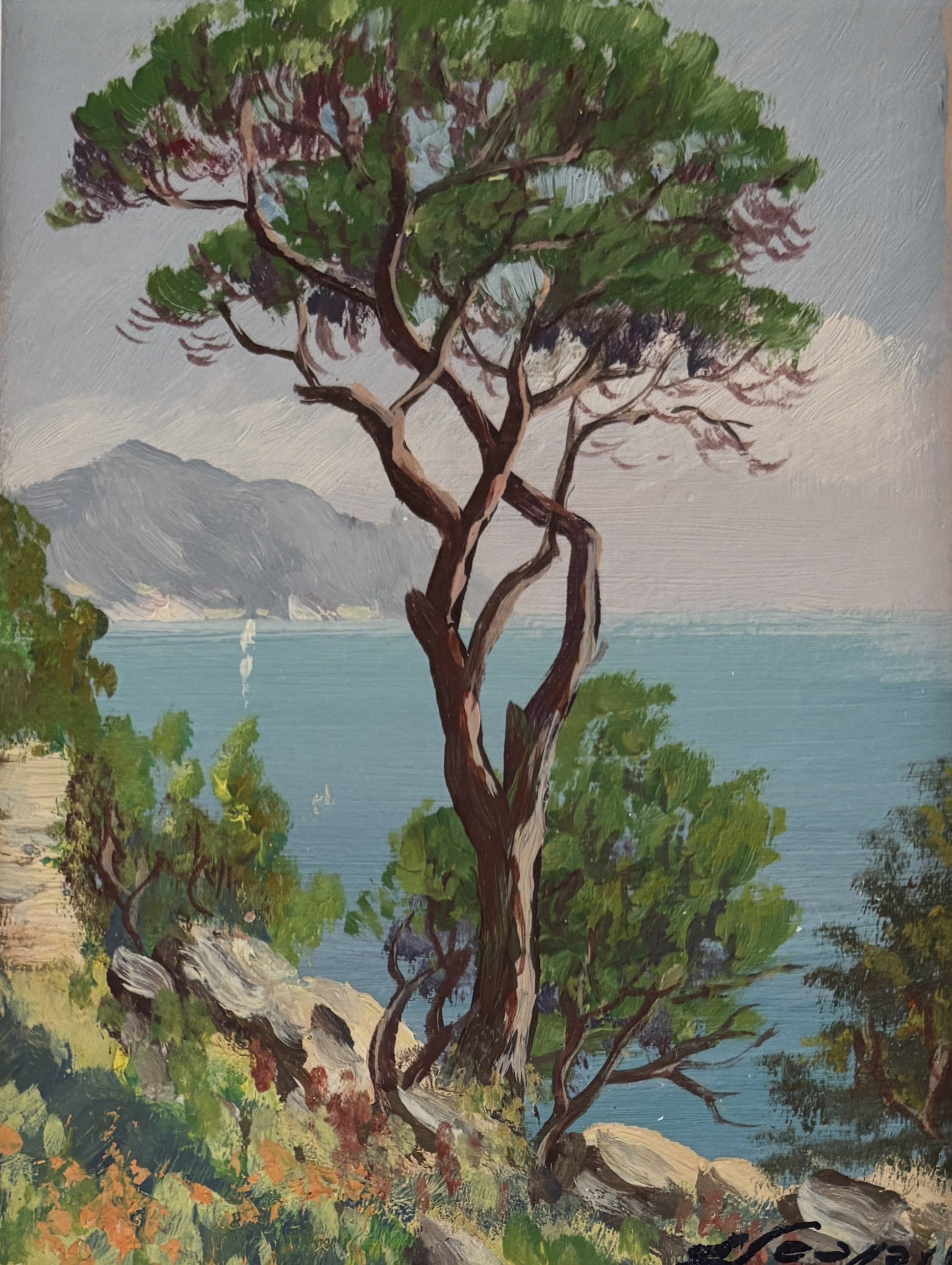 Olio su carta cm 14,8x10,5 firmato in basso a dx