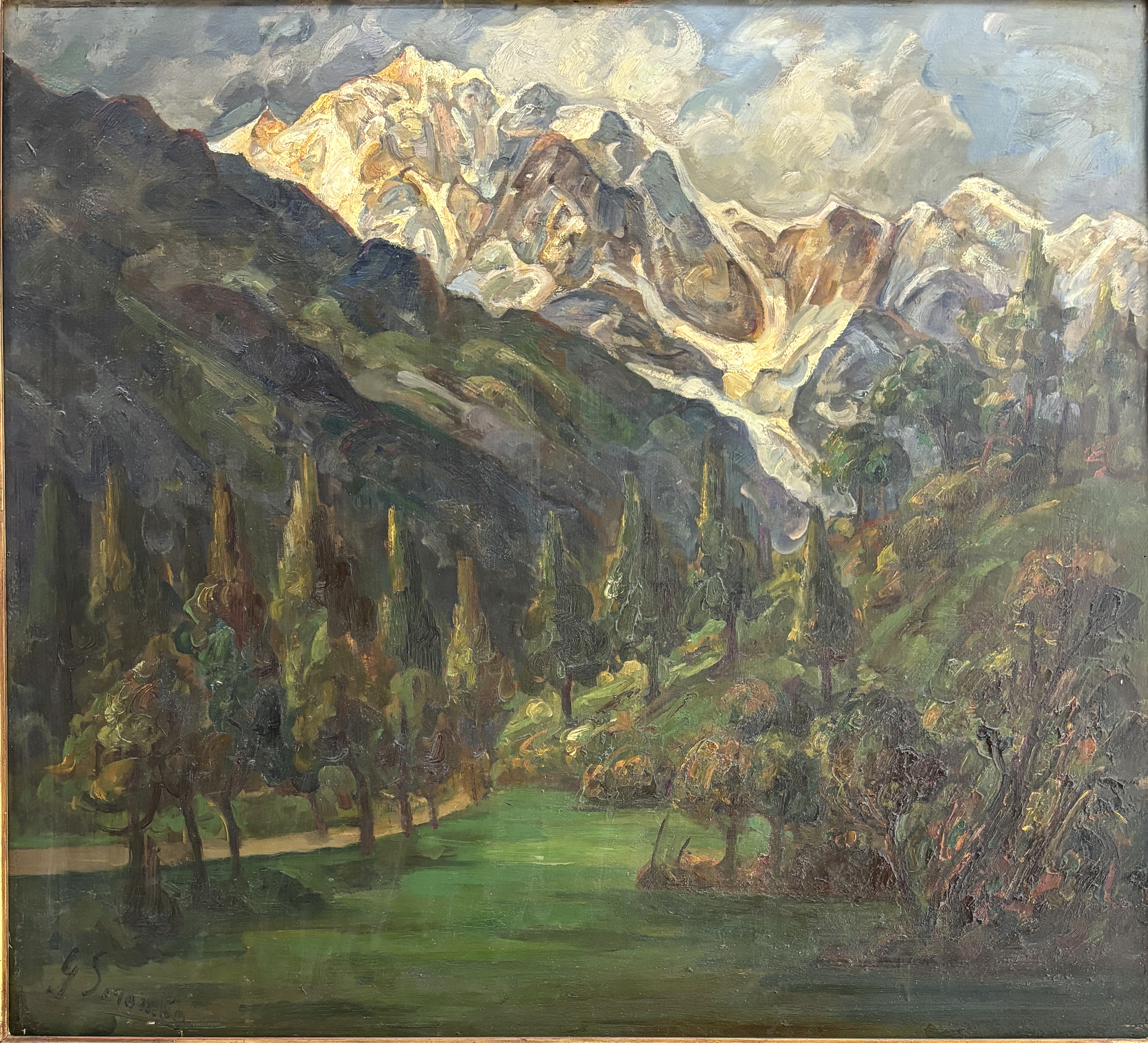 Olio su tavola cm 79x87 firmato in basso a sx