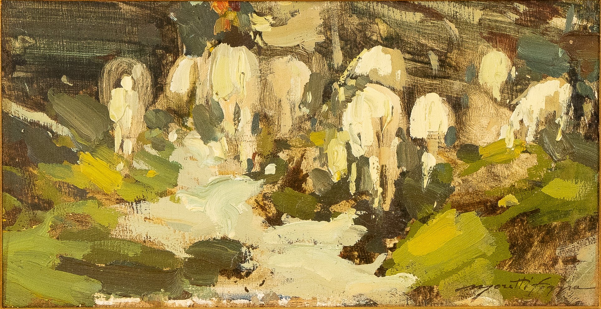 Olio su cartone cm 12,5x23 firmato in basso a dx