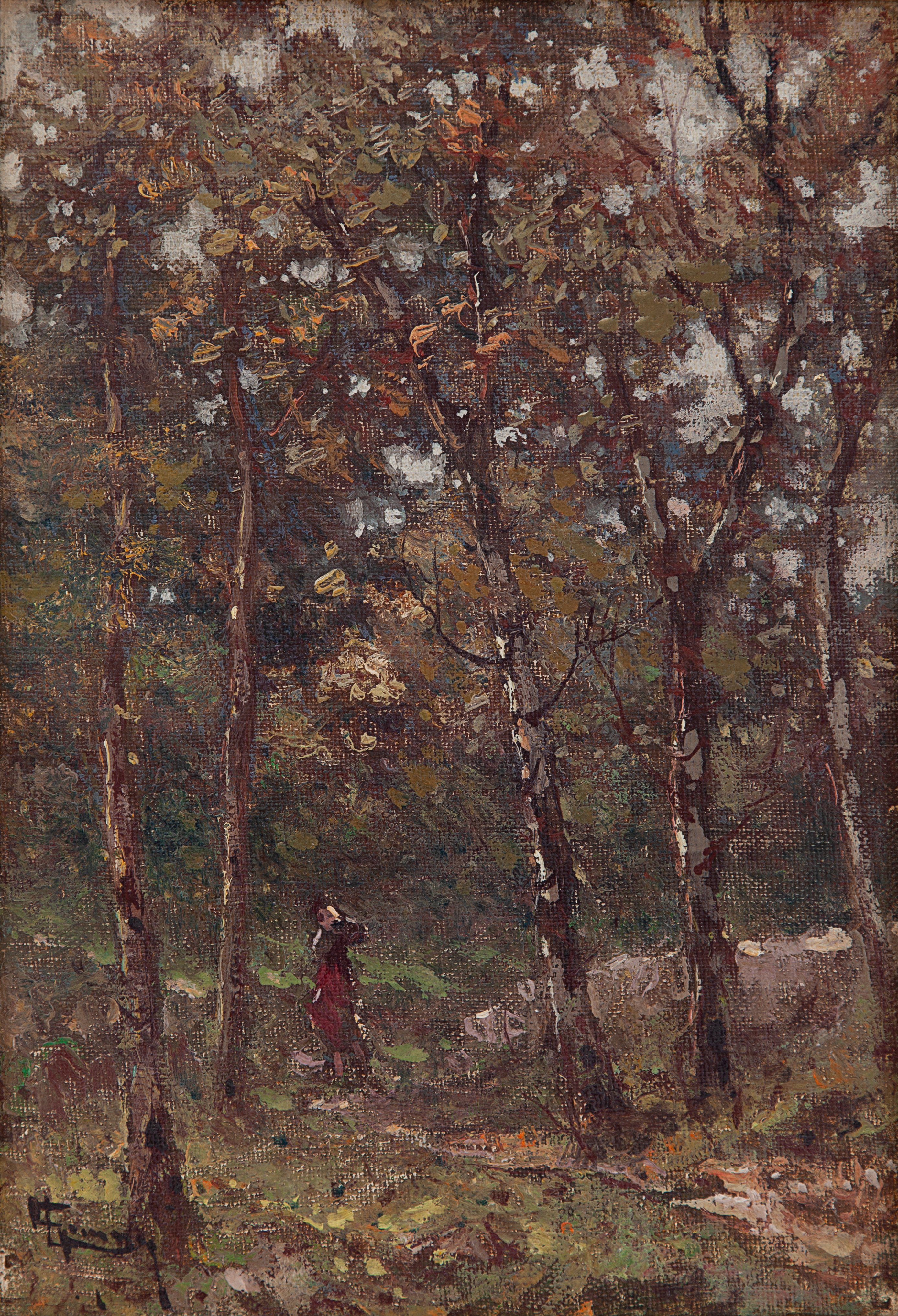 Olio su tela appl. su cartone cm 31x21 firmato in basso a sx